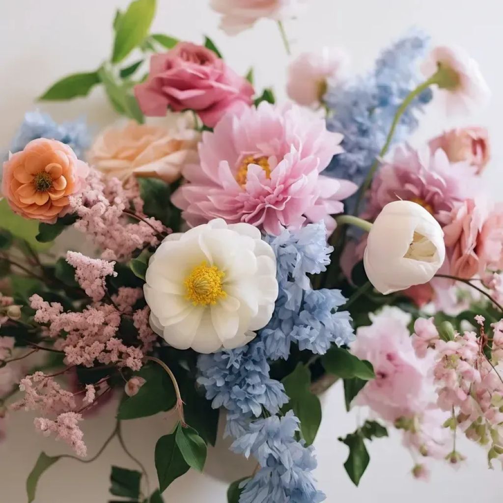 An arrangement of seasonal blooms in a Pastel color scheme, arranged in a vase. PLEASE NOTE: Flower stems and colors will vary due to availability. Designer's Choice will contain seasonal flowers! FLOWERS USED WILL NOT BE THE SAME AS THOSE USED IN PHOTO.